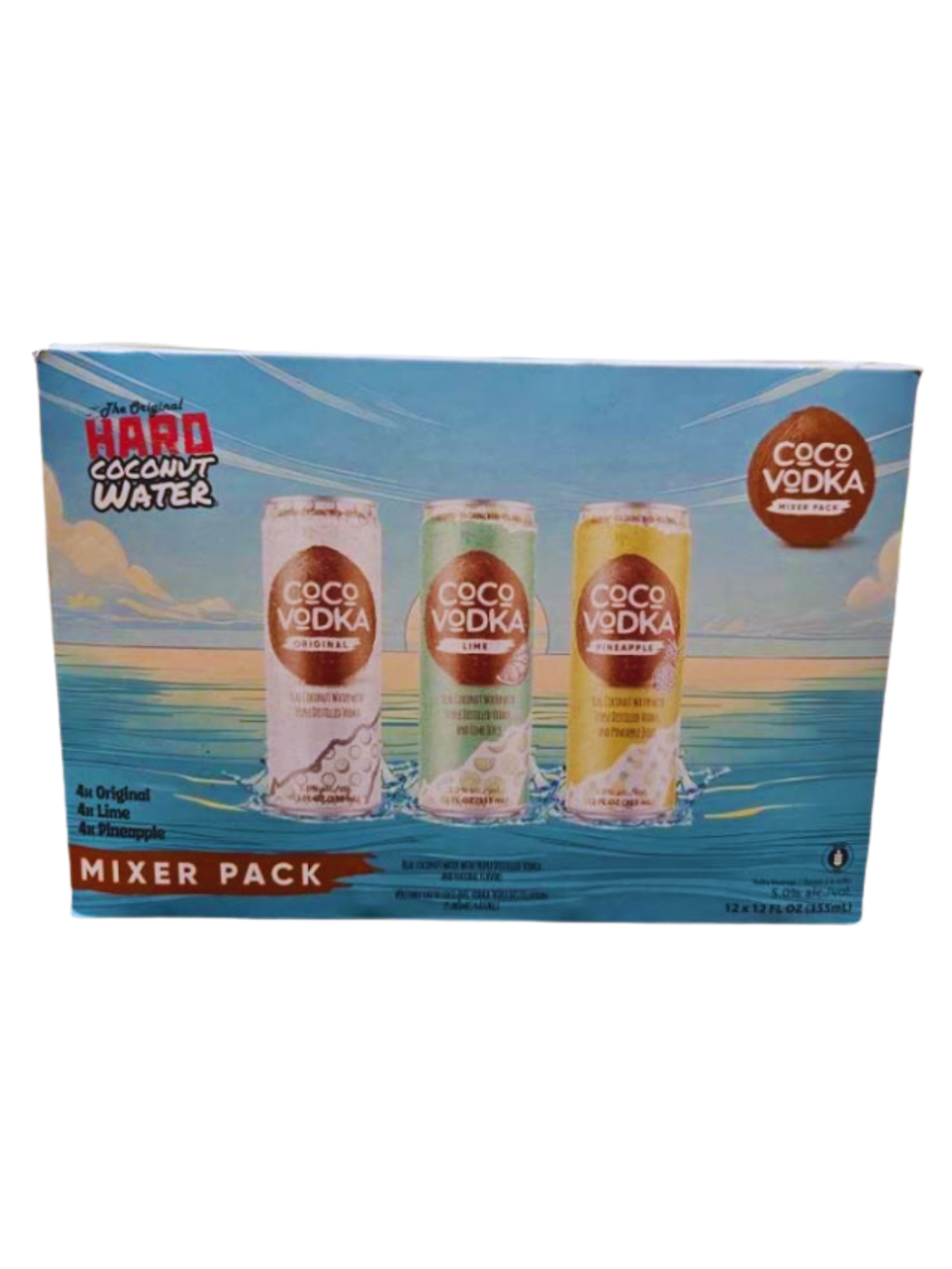 CoCo Vodka Mixer 12-Pack is a refreshing cocktail bundle featuring premium vodka, natural coconut water, and a hint of sparkling water.