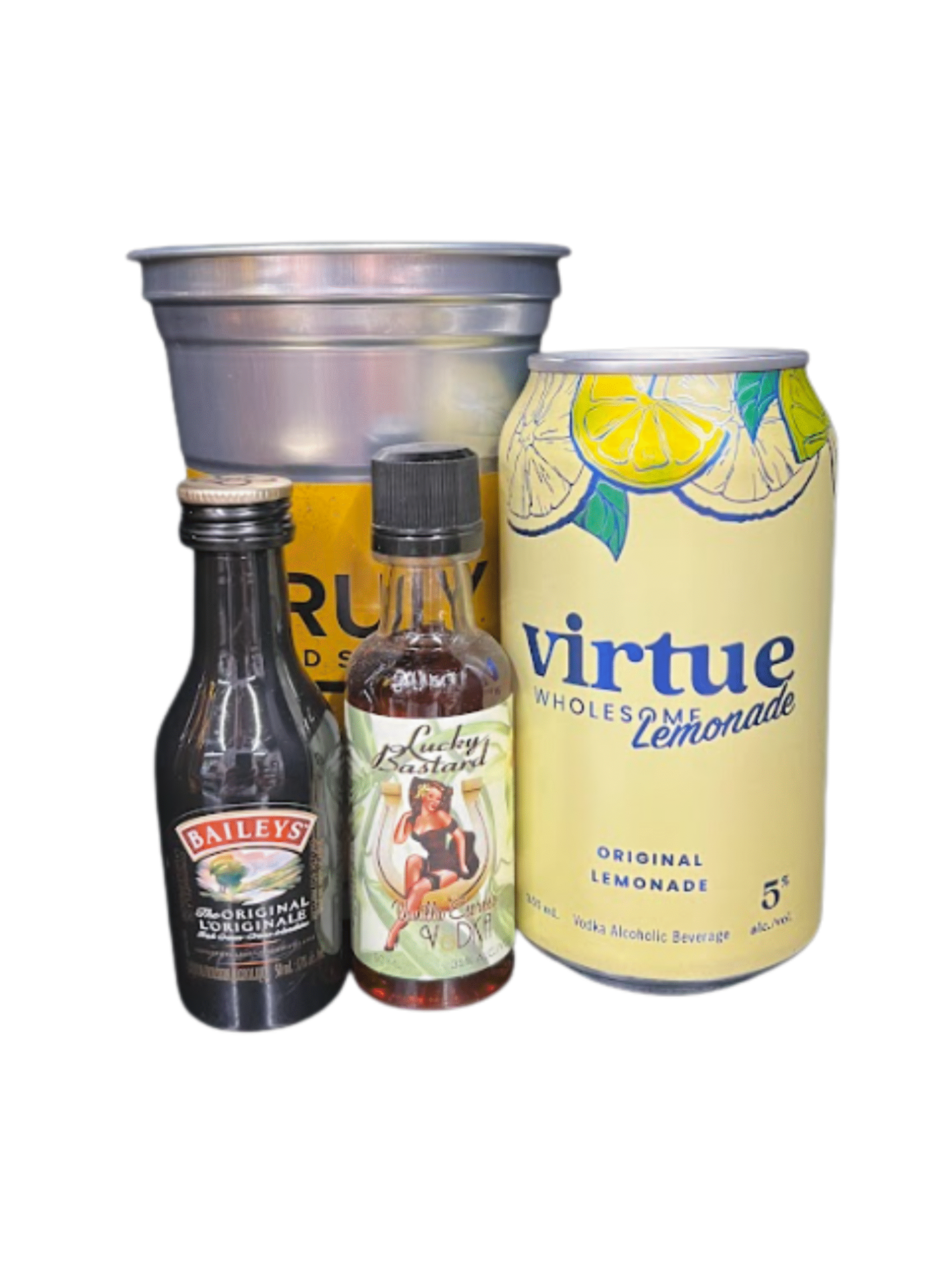 Includes 1 virtue lemonade, 1 vanilla espresso Lucky Bastard 50ML, and 1 Bailey’s Original 50ML.