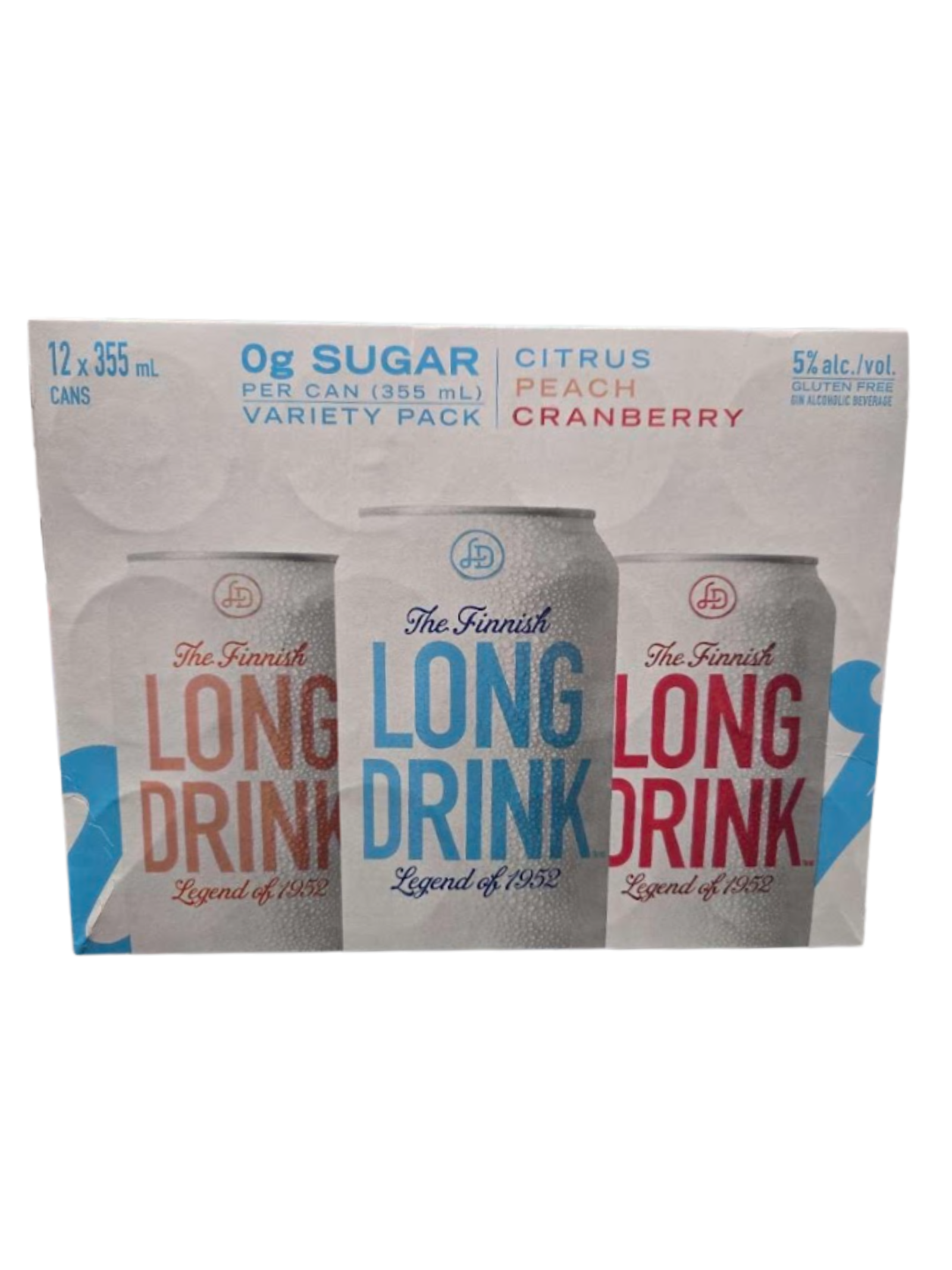 The same grapefruit, juniper berry, and gin flavours as the original Finnish Long Drink, but with zero sugar. This pack features Citrus, Cranberry, and Peach.