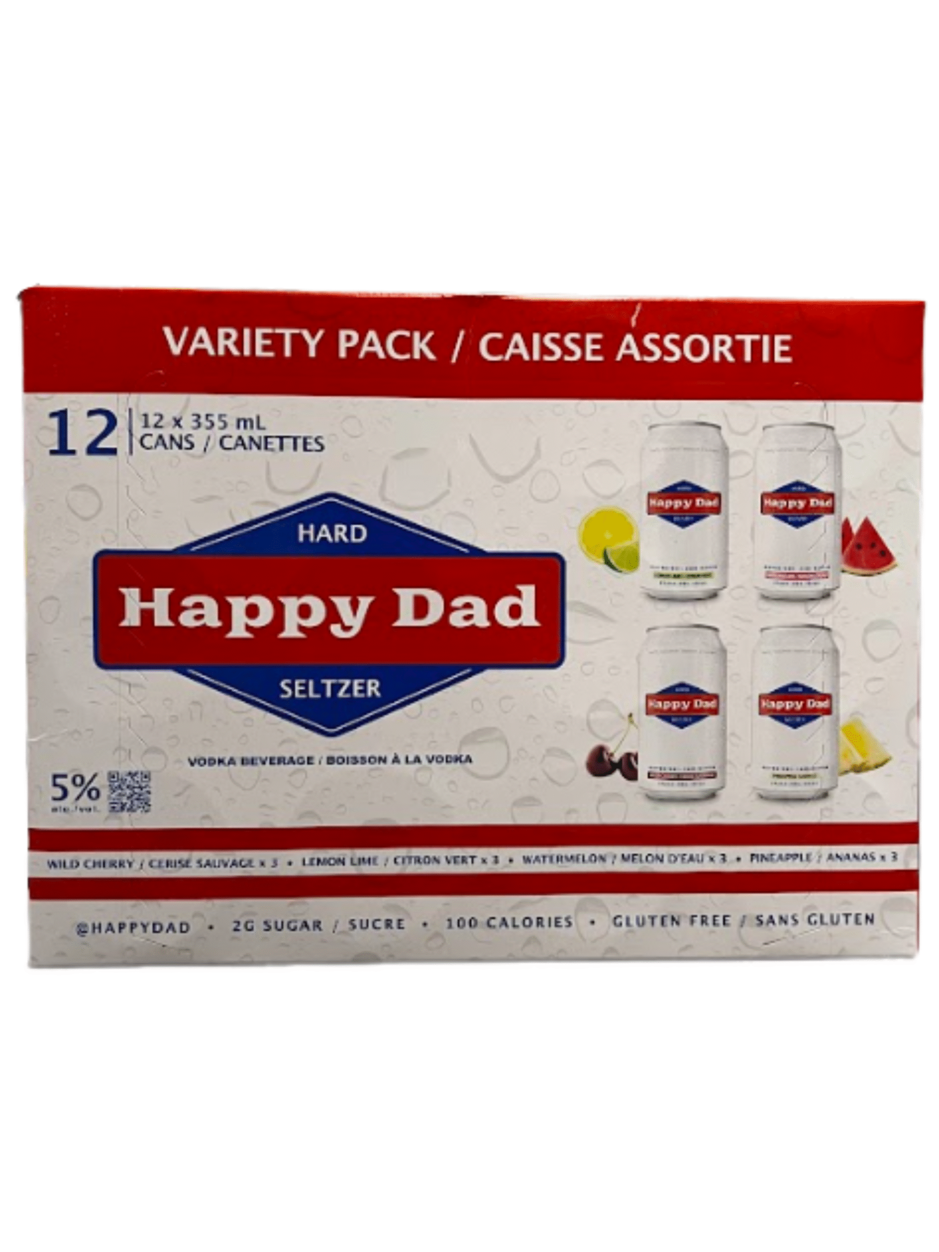 Happy Dad is a low-sugar and gluten-free hard seltzer bursting with refreshing fruit flavours. This exciting variety pack offers an assortment of twelve 355mL cans in four of Happy Dad’s popular flavours: wild cherry, lemon-lime, watermelon and pineapple. It is a perfect option for effortless holiday entertaining.