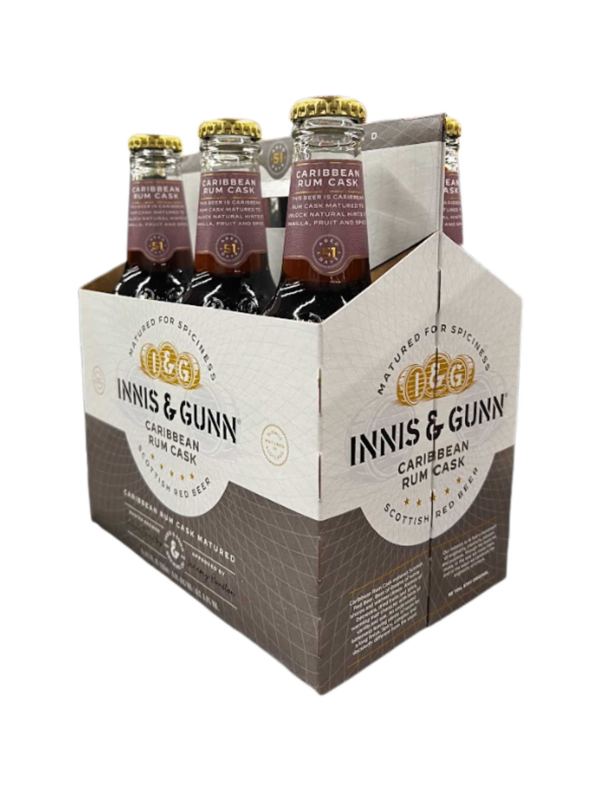 Innis & Gunn Caribbean Rum Cask is a unique Scottish golden beer matured in Caribbean rum barrels, delivering an irresistible blend of rich malt sweetness, warming spice, and toasted oak character. Notes of vanilla, tropical fruits, and brown sugar come through in every sip, making this a truly distinctive brew.