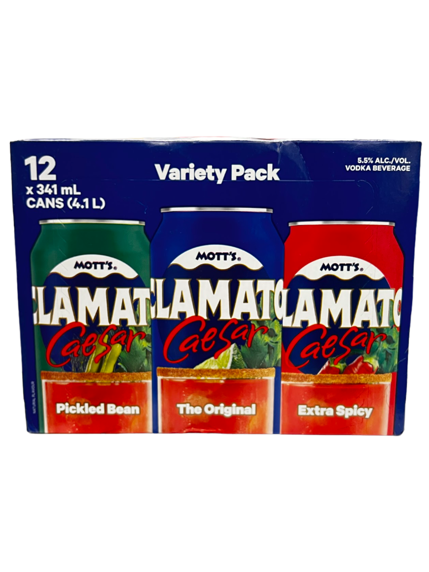 The Mott’s Clamato Variety Pack includes the 3 top-selling customer favourites: Original, Extra Spicy and Pickled Bean. There’s something in this pack for every Caesar lover. Serve chilled or over ice with your favourite Caesar garnish.