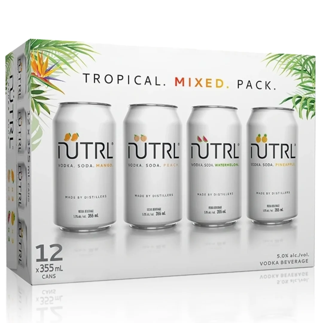 This tropical treat features 4 refreshing flavours: Mango, Peach, Pineapple and Watermelon. 0g sugar, 0g carbs, no preservatives and only 100 calories per 355ml can.