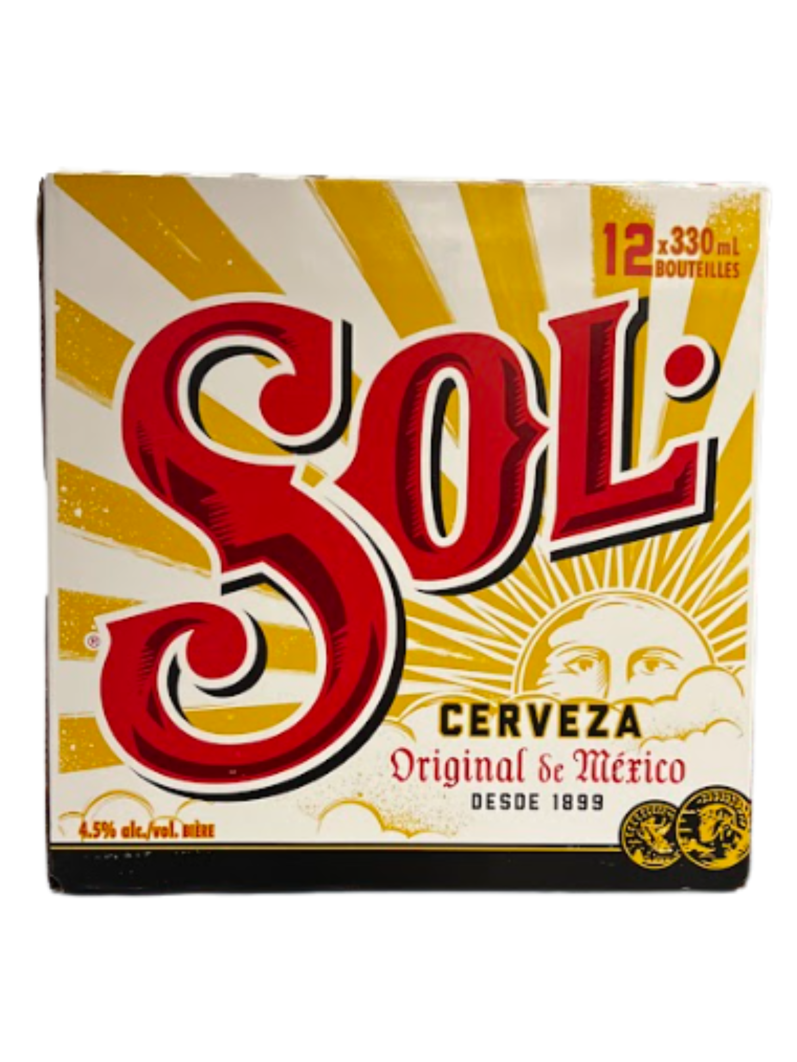 Sol Cerveza is a 4.5% ABV light, refreshing Mexican lager with a bright golden color, subtle malty sweetness, and a crisp, clean finish. Often served with lime.
