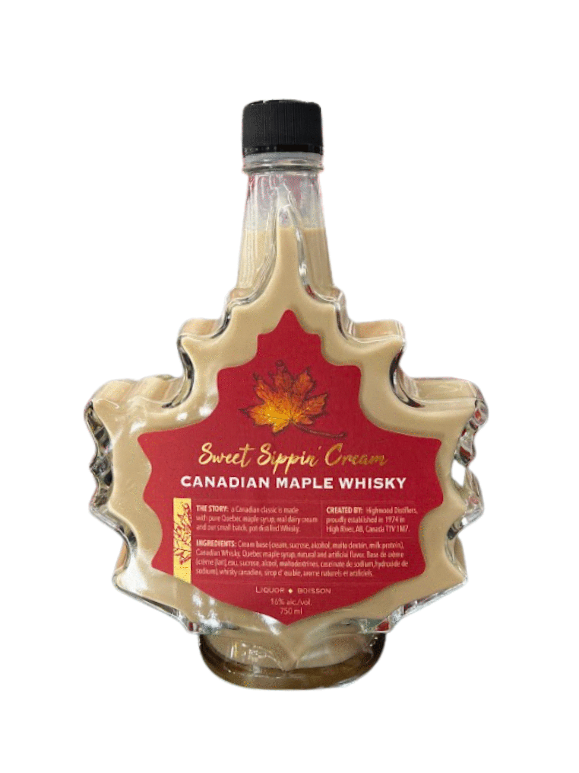 Truly Canadian! Quebec maple syrup, Canadian Whisky, packaged in a maple leaf bottle. A luscious blend of fresh dairy cream from Ireland and then add natural flavors for a soft, smooth delicious liqueur. Pure Québec maple syrup, and just the right amount of Canadian Whisky. Smooth and rich with a balanced taste, it is ideal on the rocks.